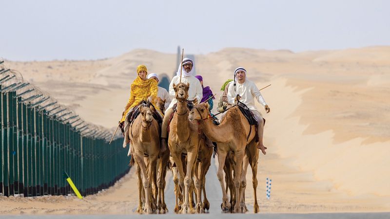 وتقطع القافلة مسافة 1050 كيلومتراً على ظهور الهجن، في مسار هو الأطول في تاريخ الرحلة والتاريخ المعاصر، حيث انطلقت، في 30 نوفمبر الماضي، من منطقة السلع في العاصمة أبوظبي، ويُترقب وصولها، في 20 ديسمبر الجاري، إلى القرية التراثية بالقرية العالمية في دبي.