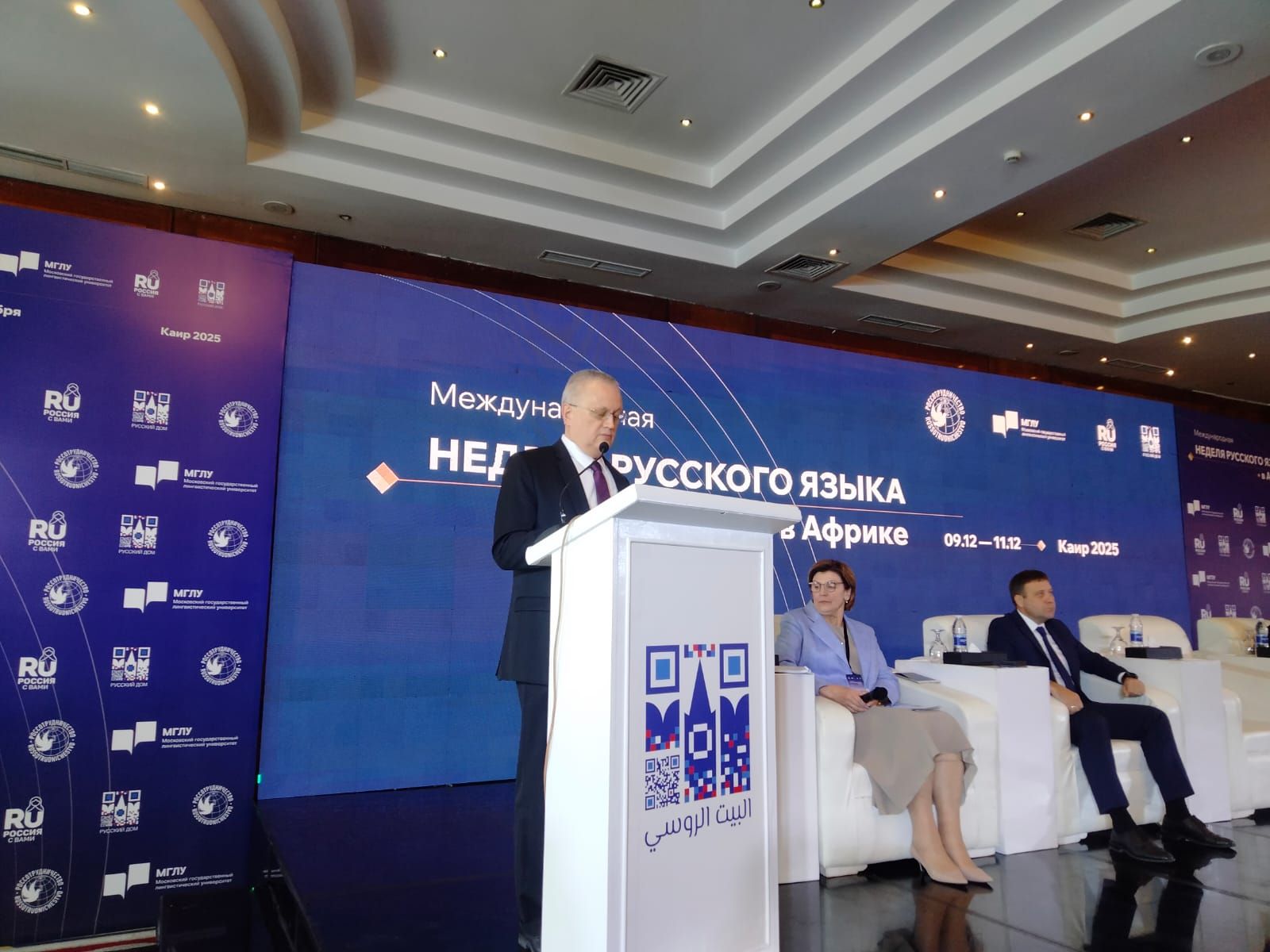 جاء هذا خلال الكلمة التى القاها السفير فى افتتاح المؤتمر الدولى للغة الروسية، الذى يحتفى بدارسى مدرسى اللغة حول العالم.
