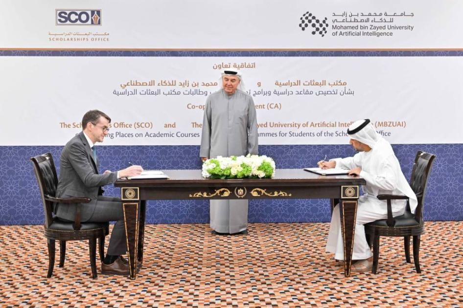 وقّع «مكتب البعثات الدراسية» في ديوان الرئاسة و«جامعة محمد بن زايد للذكاء الاصطناعي»، اتفاقية تعاون تهدف إلى تعزيز الشراكة بينهما، ووضع إطار واضح لآليات التنسيق وتبادل الخبرات في مجالات الابتكار التكنولوجي والذكاء الاصطناعي.