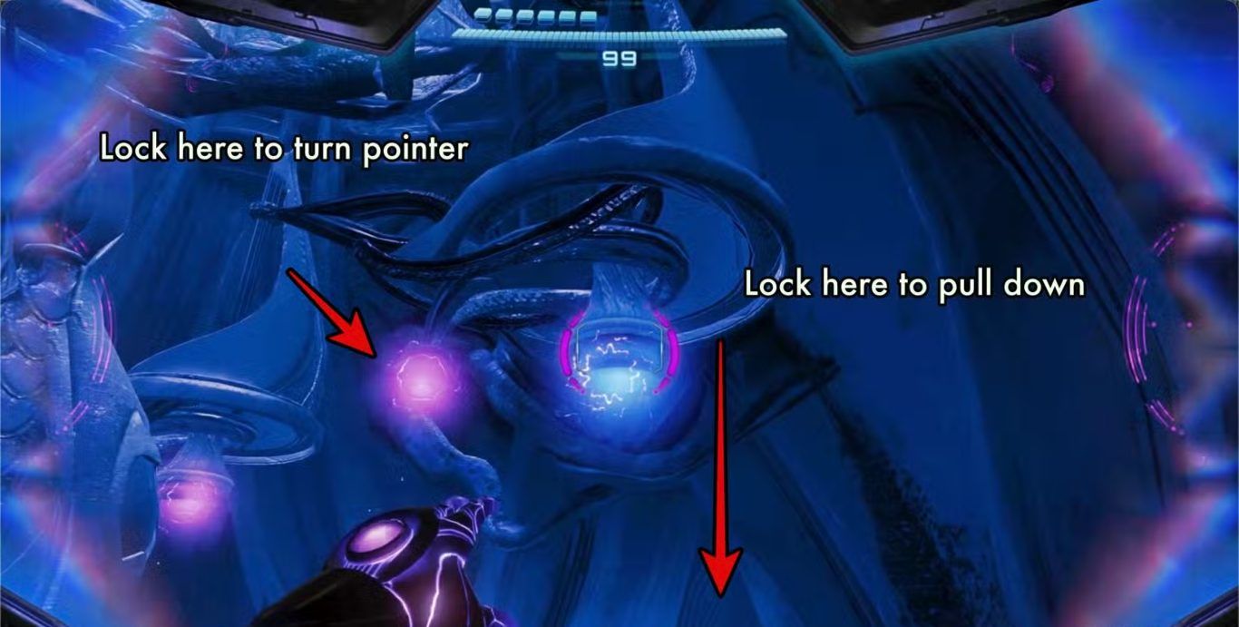 وعند إتمام الخطوتين السابقتين أي ضبط الارتفاع وتوجيه الرؤوس يُصبح النظام جاهزًا لاستقبال الطاقة. هنا يبدأ اللاعب في استخدام Thunder Shot والذي يُعد من أهم الأسلحة العنصرية في Metroid Prime 4 إذ يجب إطلاق عدة طلقات متتابعة من Thunder Shot مباشرة نحو رأس الهيكل المركزي وليس نحو القضبان نفسها.
