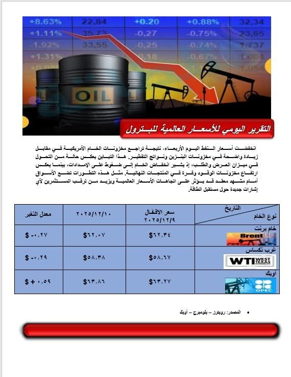 وأشار تقرير الهيئة العامة للبترول، اليومى للأسعار العالمية للبترول،انخفاض أسعار النفط اليوم الأربعاء، نتيجة تراجع مخزونات الخام الأمريكية في مقابل زيادة واضحة في مخزونات البنزين ونواتج التقطير هذا التباين يعكس حالة من التحول في ميزان العرض والطلب، إذ يشير انخفاض الخام إلى ضغوط على الإمدادات، بينما يعكس ارتفاع مخزونات الوقود وفرة في المنتجات النهائية مثل هذه التطورات تضع الأسواق أمام مشهد معقد قد يؤثر على اتجاهات الأسعار العالمية ويزيد من ترقب المستثمرين لأي إشارات جديدة حول مستقبل الطاقة.