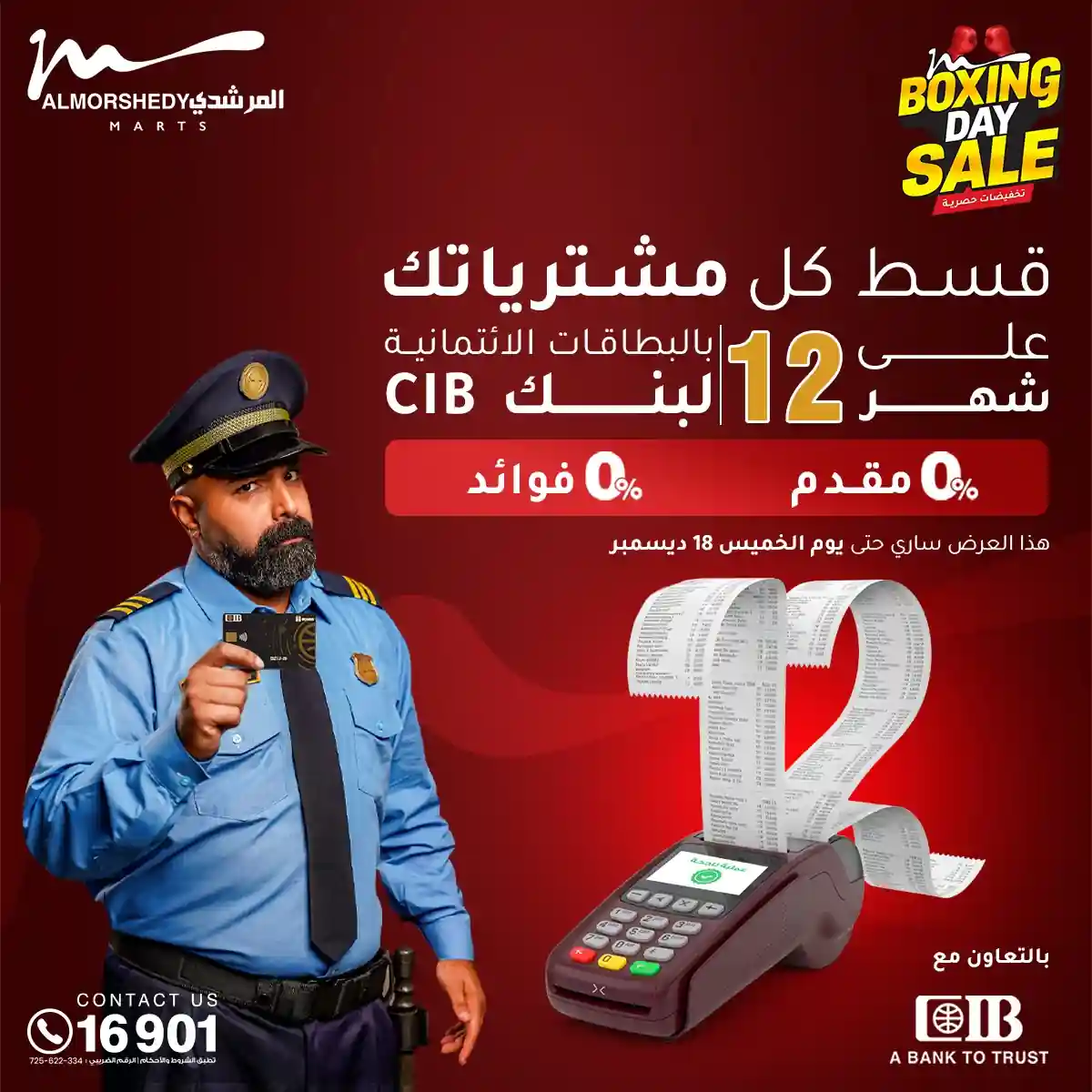 عروض جديدة من أسواق المرشدي مع اكبر مهرجان للتخفيضات في مصر خصومات حتى 70% وقسط براحتك بدون فوائد بأسعار العروض المخفضة على 12 شهر لحاملي بطاقة ائتمان CIB أو قسط براحتك مع VALU بدون مقدم حتى 60 شهر أو بدون مقدم وبدون فوائد مع نظام هاتريك وكمان النقل مجاني للقاهرة والجيزة والقليوبية على قسم الأجهزة الكهربائية والموبيليا والمراتب ( تطبق شروط المكان ) خصومات على جميع الأقسام أدوات منزلية – اجهزة كهربائية – مفروشات – موبيليا – نجف – سجاد – مراتب – ملابس رجالي وحريمي وأطفالي ومستلزمات ولعب الأطفال وجاليري وأقسام تانية كتير استمتع بالتسوق في أسواق المرشدي مع أكتر من 12 قسم و أكثر من 10,000 منتج يعني كل اللي بتحلم بيه عند المرشدي هتلاقيه