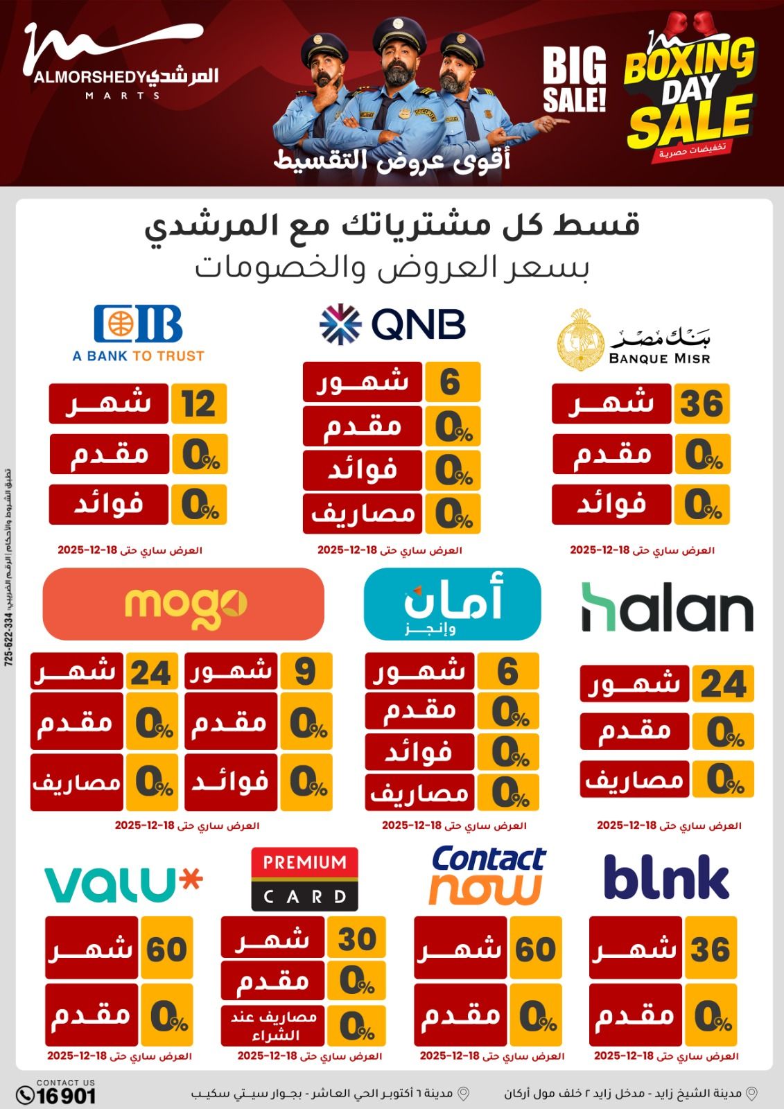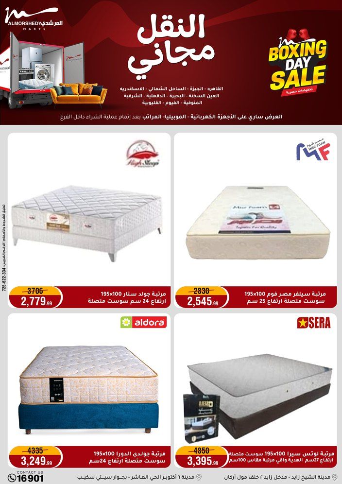 عروض جديدة من أسواق المرشدي مع اكبر مهرجان للتخفيضات في مصر خصومات حتى 70% وقسط براحتك بدون فوائد بأسعار العروض المخفضة على 12 شهر لحاملي بطاقة ائتمان CIB أو قسط براحتك مع VALU بدون مقدم حتى 60 شهر أو بدون مقدم وبدون فوائد مع نظام هاتريك وكمان النقل مجاني للقاهرة والجيزة والقليوبية على قسم الأجهزة الكهربائية والموبيليا والمراتب ( تطبق شروط المكان ) خصومات على جميع الأقسام أدوات منزلية – اجهزة كهربائية – مفروشات – موبيليا – نجف – سجاد – مراتب – ملابس رجالي وحريمي وأطفالي ومستلزمات ولعب الأطفال وجاليري وأقسام تانية كتير استمتع بالتسوق في أسواق المرشدي مع أكتر من 12 قسم و أكثر من 10,000 منتج يعني كل اللي بتحلم بيه عند المرشدي هتلاقيه