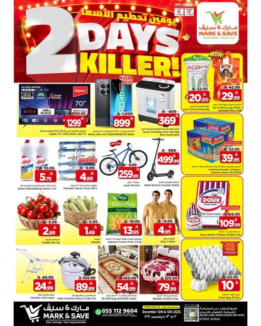 عروض الجمعة والسبت في مارك اند سيف في 12 إلى 13 ديسمبر 2025 افضل المنتجات الخاصة و العروض الحصرية ليومين فقط أكبر الصفقات في المدينة… مدخرات ضخمة، مفاجآت ضخمة لا تفوتوا افضل العروض الحصرية في مكان واحد ضمن عروض اليوم الواحد