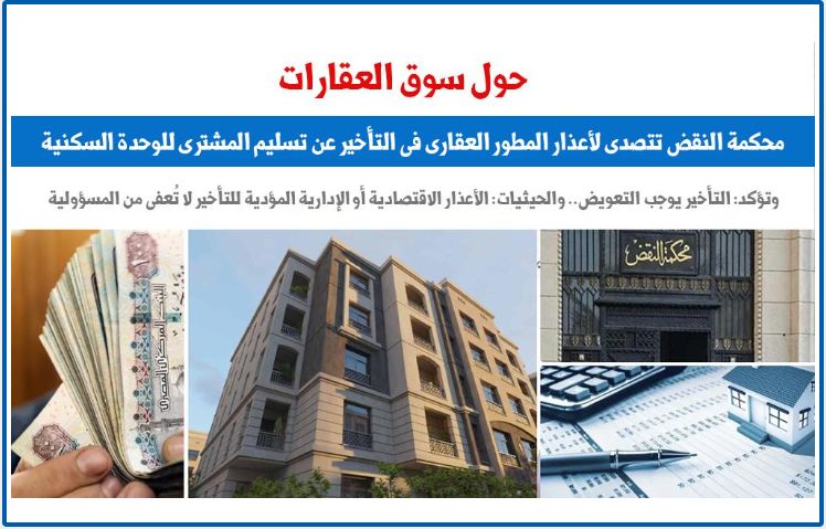 حول سوق العقارات.. النقض تتصدى لأعذار المطور العقارى فى التأخير عن تسليم المشترى للوحدة السكنية.. وتؤكد: التأخير يوجب التعويض.. والحيثيات: الأعذار الاقتصادية أو الإدارية المؤدية للتأخير لا تُعفى من المسؤولية