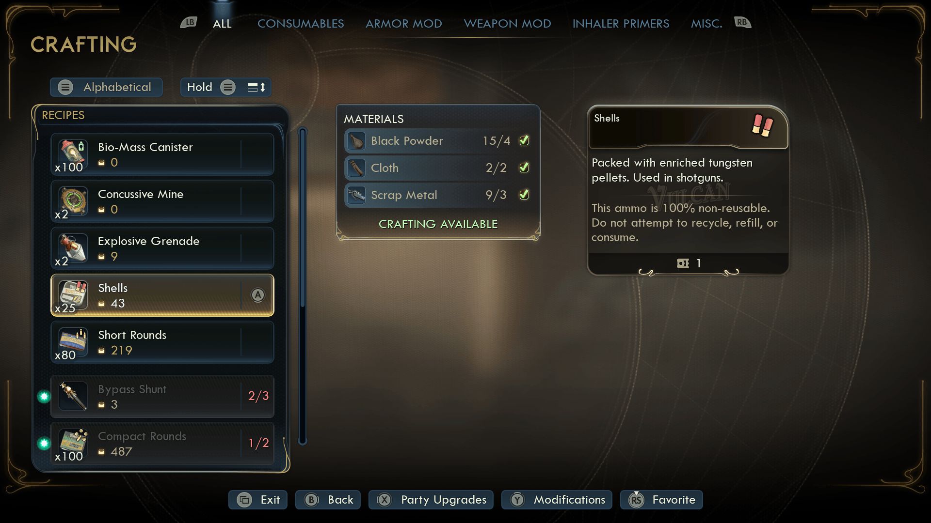 - لهذا السبب، يجب أن تكون وصفات تصنيع الذخيرة أول ما تشتريه عند وصولك إلى Fairfield، حتى قبل شراء سلاح أو درع جديد.