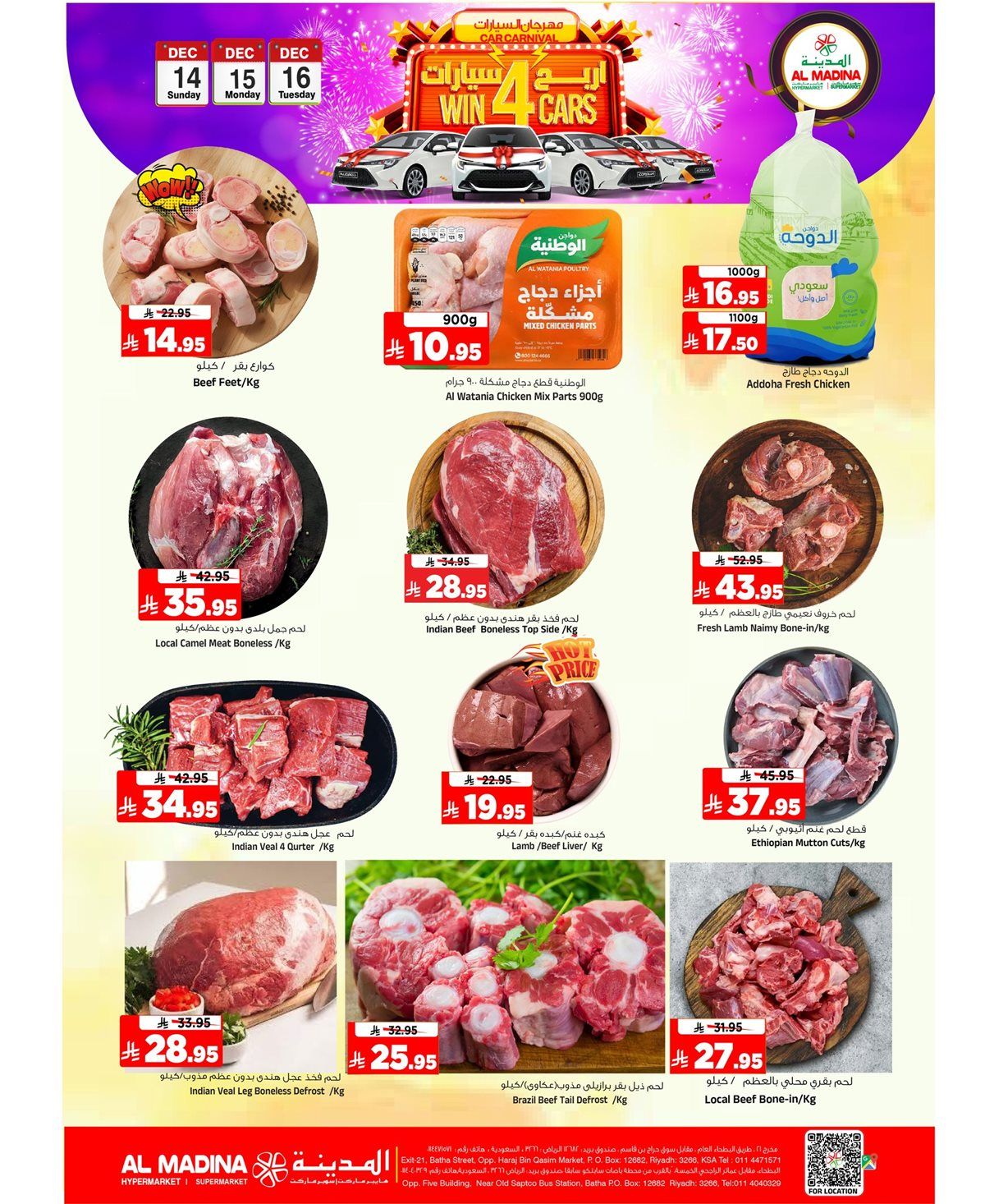نستعرض معاكم اليوم احدث عروض المدينة هايبر ماركت الاحد 14 ديسمبر 2025 وتحتوي علي قطع اللحم البقري المتنوعة مع اللحم المفروم ولحوم الجمال والضأن بالإضافة إلى الكوارع وقطع العجل والبفتيك بجانب الموز بأنواعه والبطيخ والتفاح واليوسفي والبرتقال والجوافة و الخضروات الطازجة مثل الخيار والطماطم والبصل والبطاطس