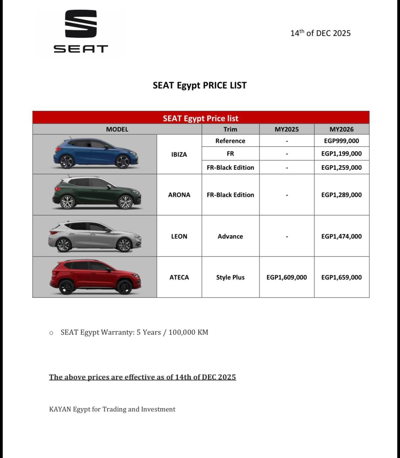الأحد، 14 ديسمبر 2025 06:26 مكشفت شركة كيان إيجيبت، الوكيل الحصري لسيارات سيات في مصر، عن إجراء تخفيضات جديدة على قائمة أسعار عدد من طرازات العلامة الإسبانية المطروحة محليًا.