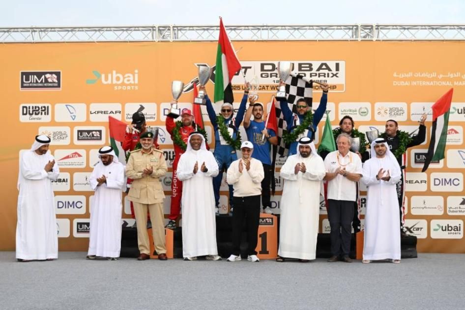 احتفل فريق فيكتوري، بانتصاره باللقب العالمي لبطولة العالم للزوارق السريعة فئة «إكس كات» لموسم 2025، بالفوز بواسطة الثنائي سالم العديدي وعيسى آل علي متن زورق «فيكتوري 7» بالمركز الأول في السباق الرئيسي الثاني، الأحد في ختام جائزة دبي الكبرى.