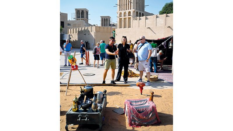 سيّاح يزورون «المجلس» المفتوح للزوّار بحي الفهيدي التاريخي في دبي، ويشربون «القهوة الإماراتية» التي تقدّم للضيوف مع حبات التمر، ويشاهدون عدداً من المعروضات التراثية.. و«المجلس» معرض فني شهير ومميز، ويُعد من أول المعارض الفنية في دبي، ويقع داخل أحد المنازل التراثية ويستضيف أعمال فنانين محليين وعالميين، وهو مفتوح للزوّار للاستمتاع بالفن والتعرف إلى التراث الثقافي، حيث يفتح الحي يومياً من الثامنة صباحاً حتى 10 مساءً، والدخول مجاني بشكل عام.