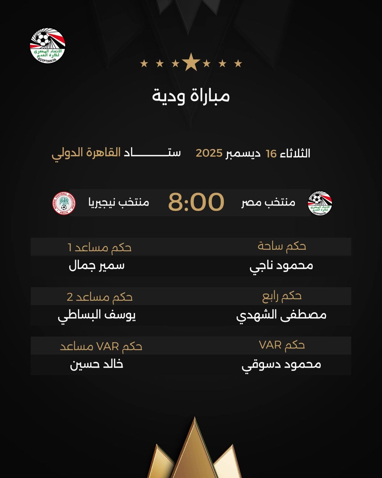 طاقم تحكيم مباراة مصر ونيجيريا الودية
