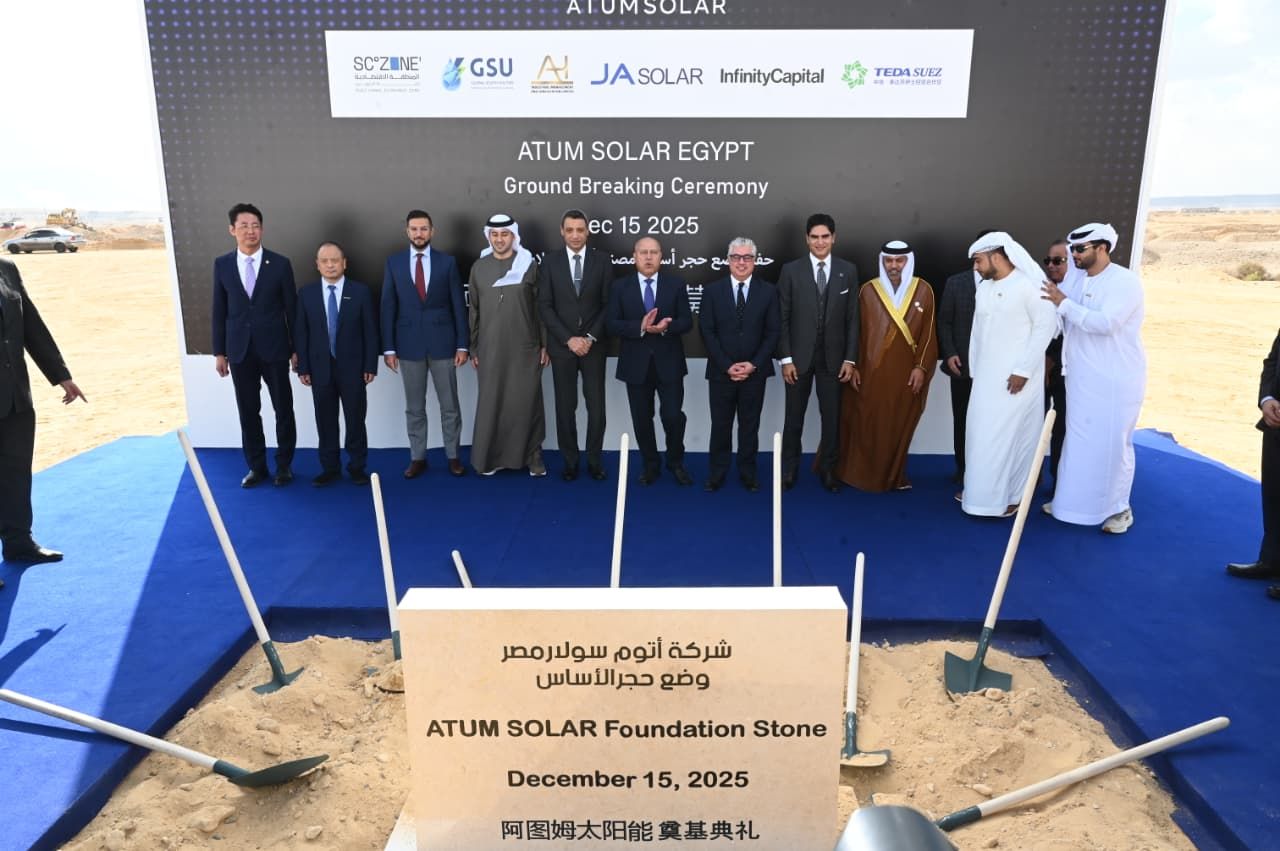 شهد الفريق مهندس كامل الوزير، نائب رئيس مجلس الوزراء للتنمية الصناعية وزير الصناعة والنقل وضع حجر الأساس لمجمع أتوم سولار للألواح الشمسية على مساحة 204 آلاف متر مربع بالمنطقة الاقتصادية لقناة السويس (منطقة تيدا الصناعية) وذلك بشراكة صينية مصرية إماراتية بحرينية، وقد شارك في مراسم وضع حجر الأساس اللواء/ طارق حامد الشاذلي، محافظ السويس، أحمد أبو هشيمة رئيس شركة AH للإدارة والاستشارات الصناعية باوفانغ جين، رئيس مجلس إدارة شركة جيه إيه سولار الصينية، محمد الظاهري رئيس شركة جلوبال ساوث يويتيليتيز الإماراتية، وأحمد طالب رئيس شركة إنفنيتي كابيتال البحرينية، لي داي شين، رئيس شركة تيدا مصر، ووليد جمال الدين رئيس الهيئة العامة للمنطقة الاقتصادية لقناة السويس، و حمد الزعابي سفير الإمارات العربية المتحدة لدى مصر.