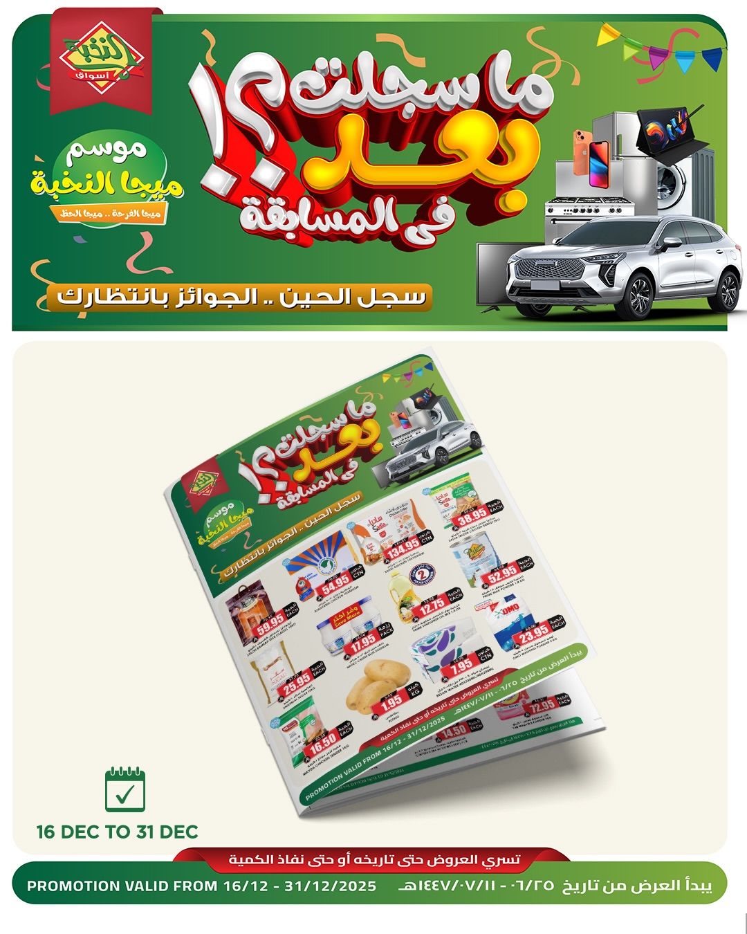 عروض اسواق النخبة اليوم الثلاثاء 16 ديسمبر 2052 و بتحتوي علي تشكيلة من المنتجات الغذائية الأساسية مثل معجون الطماطم والكاتشب والصلصات الحارة والمايونيز والخل والزيوت إضافة إلى الأجبان القابلة للدهن والأجبان المثلثة والأرز وحليب البودر والمشروبات الساخنة من أنواع الشاي والقهوة واللاتيه وغيرها من المنتجات باقل الاسعار