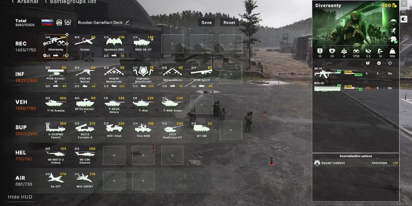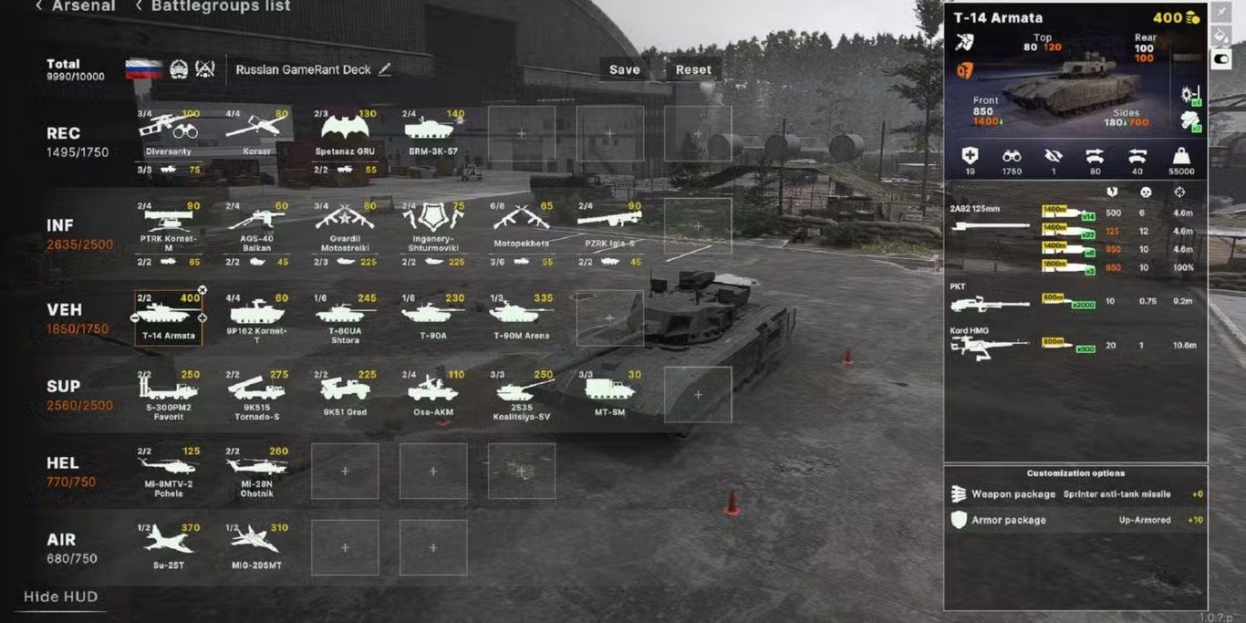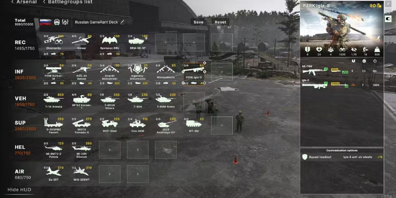 تُعد روسيا والولايات المتحدة طرفين رئيسيين في الصراع داخل اللعبة، وغالبًا ما تُعتبر القوات الروسية قوية على الأرض، خاصة عندما يتعلق الأمر بالدبابات ووحدات الهاون. مع ذلك، لا يمكن الفوز بحرب اعتمادًا على عدد محدود من الوحدات. تحتاج التشكيلة الجيدة إلى دعم اللاعب في جميع جوانب المعركة، ومنحه الأدوات المناسبة لاعتراض هجمات العدو وقلب موازين الحرب لصالحه.