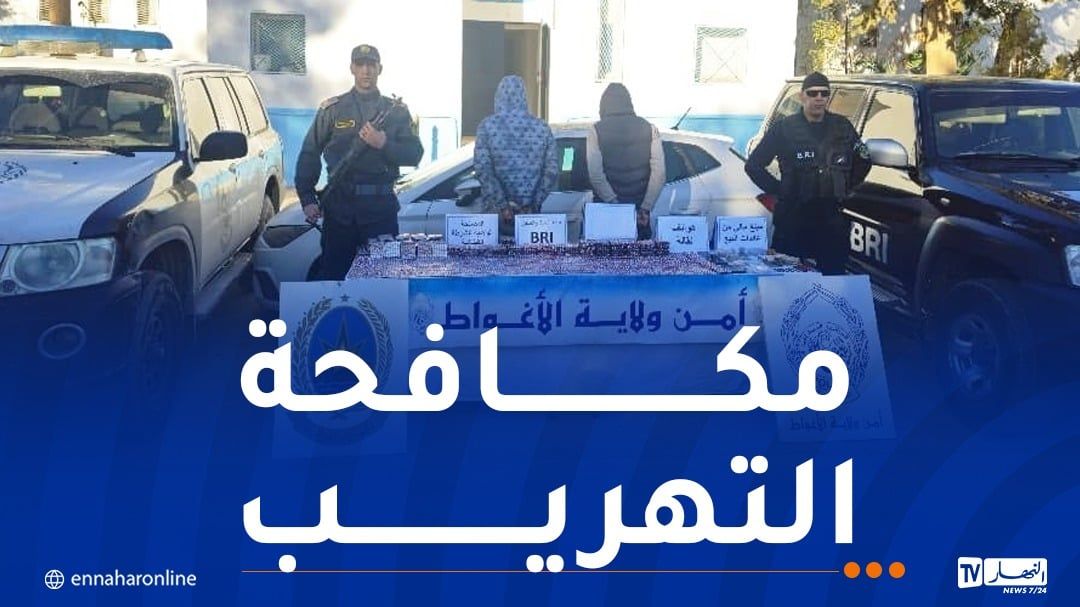 كما تمكنت مصالح الجمارك بإقليم المديرية الجهوية للجمارك بالأغواط، بالتنسيق مع فرقة البحث والتدخل التابعة لأمن ولاية الأغواط. من حجز 7.440 قرصًا مهلوسًا من نوع بريغبالين 300 ملغ، كانت مخبأة على متن سيارة سياحية، مع توقيف المتورطين.