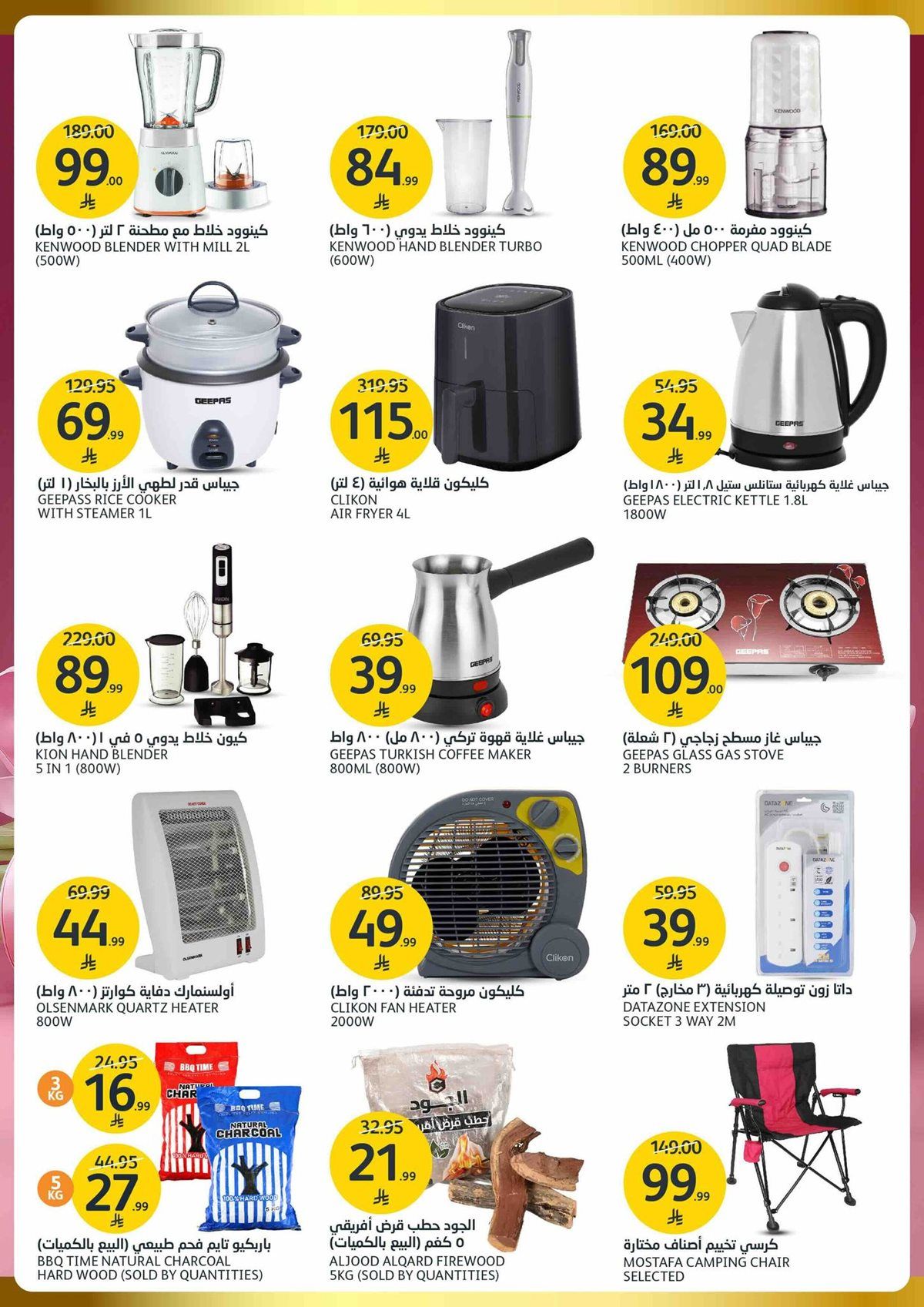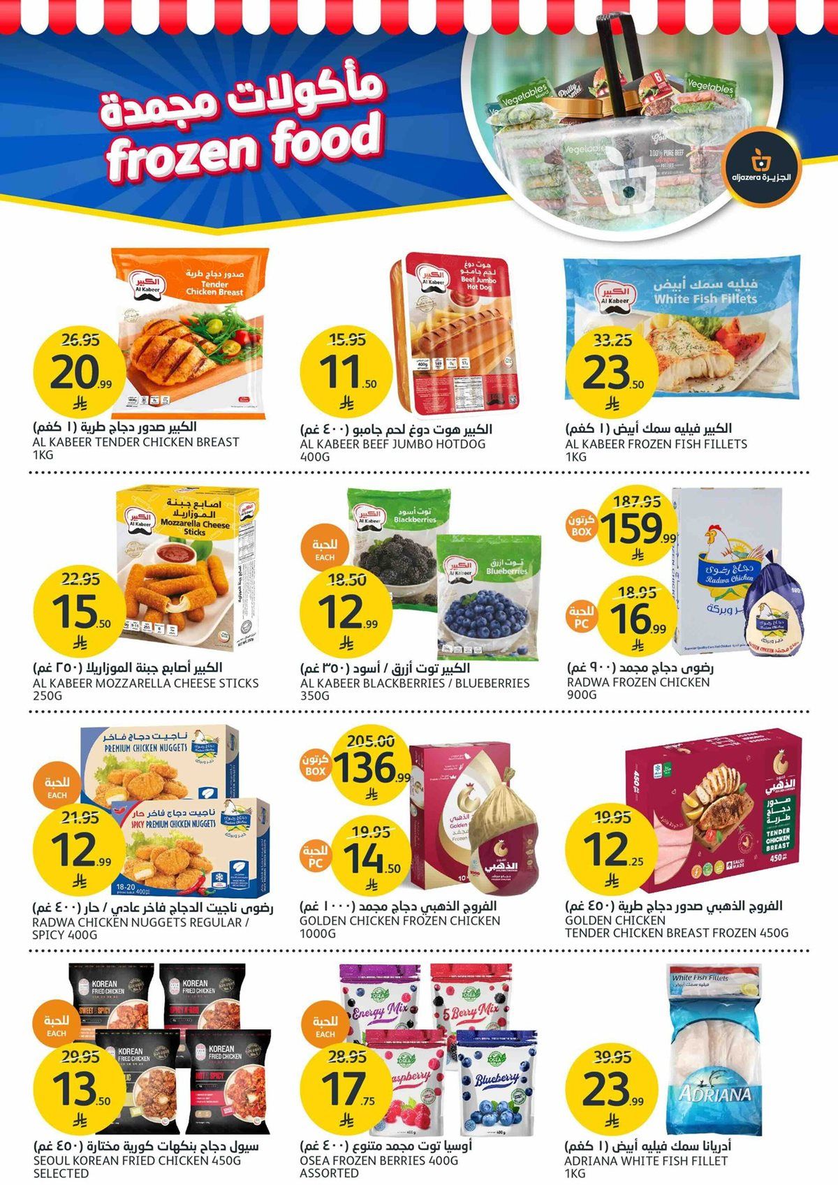 عروض أسواق الجزيرة الأسبوعية الأربعاء 26-12-1447هـ تشمل الحبوب الكاملة بأنواعها المختلفة والكيوي والخيار والتين والفول السوداني والبصل الأحمر والفلفل الحار والسكر الأسود والجبن القريش ثم تمتد إلى الأجهزة مثل جهاز تقطيع الطعام اليدوي وصانعة وافل وصانعة حبوب الشوكولاتة وصانعة شوربة كهربائية وغيرها من المنتجات باسعار مميزة