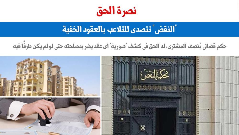 "للمتعاملين بالعقود.. نصرة الحق".. "النقض" تتصدى للتلاعب بالعقود الخفية.. حكم قضائى يُنصف المشترى: له الحق فى كشف "صورية" أى عقد يضر بمصلحته حتى لو لم يكن طرفًا فيه