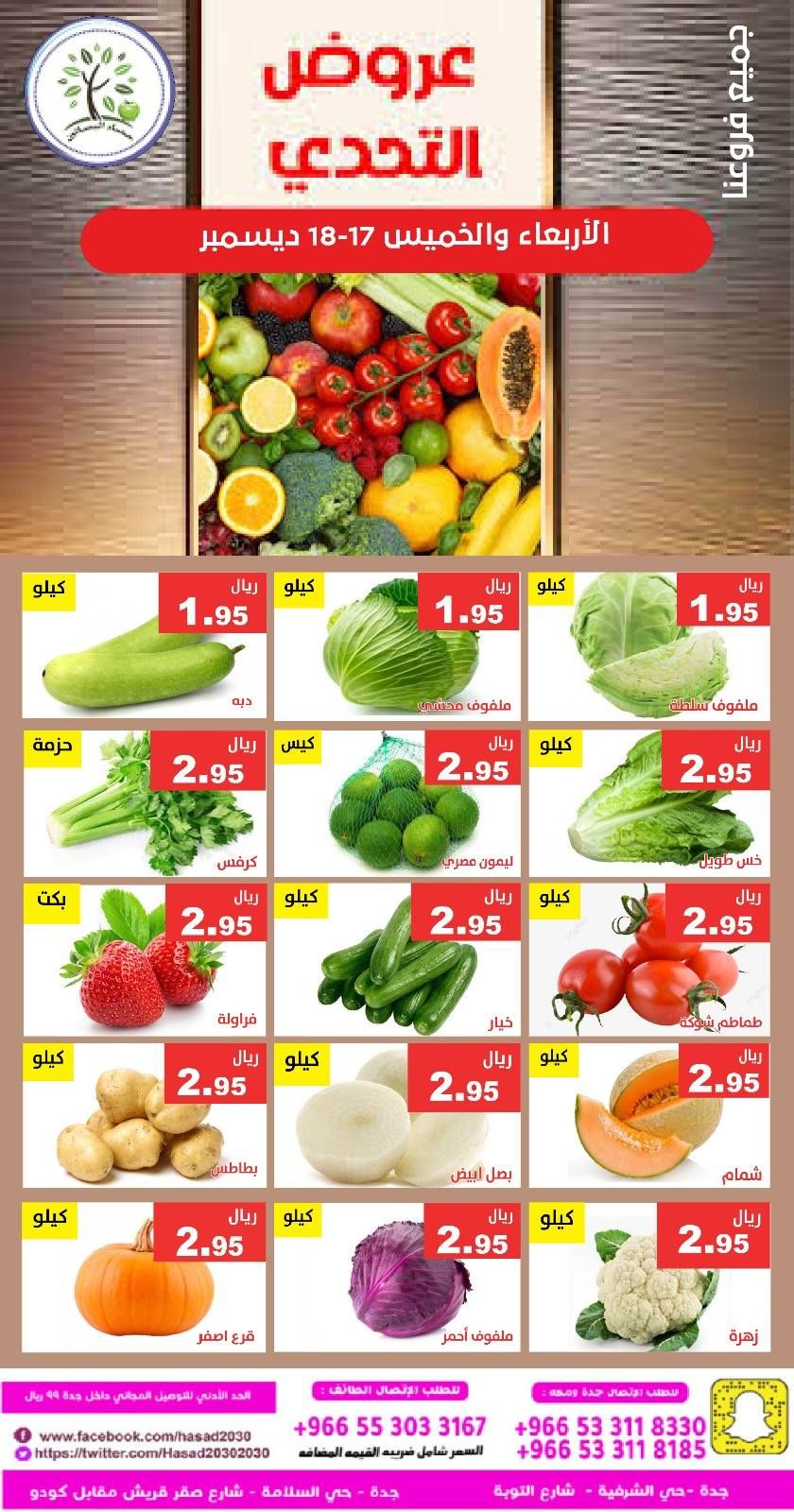 بنقدم ليكم اليوم احدث عروض مؤسسة حصاد البساتين الطازج بتاريخ الاربعاء 17 ديسمبر 2025 و تحتوي علي تشكيلة من الخضروات الطازجة من الكرنب و الكوسا و الطماطم و الخيار و غيرها من الخضروات الورقية و بتوفر كمان تشكيلة من الفواكه الموسمية و المحيلية في عرض حصري متاح لمدة يومان فقط بارخص الاسعار فقط ابقوا معنا