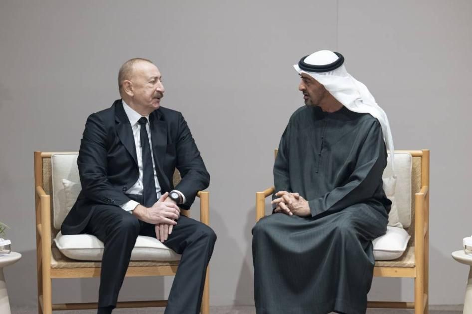 جاء ذلك خلال لقاء صاحب السمو رئيس الدولة، الرئيس إلهام علييف الذي يقوم بزيارة إلى دولة الإمارات حضر خلالها افتتاح «دورة ألعاب المستقبل أبوظبي 2025».