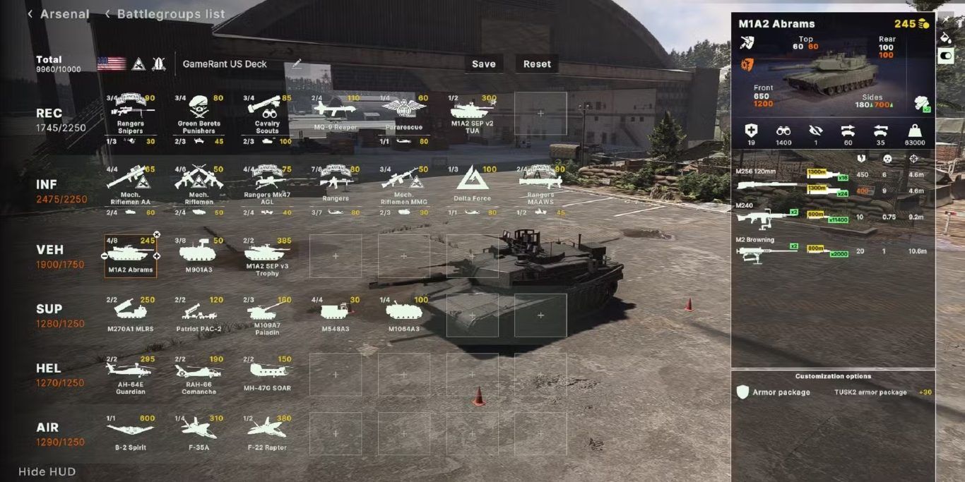 لا يوجد تنوع كبير في الدبابات ضمن الخيارات التي توفرها Armored Brigade وSpecial Operations Forces، لكن لا يزال من الممكن إضافة نسختين قويتين من M1A2، وهو ما يُعد كافيًا لتثبيت السيطرة على منطقة أو تنفيذ اندفاع بري واسع.
