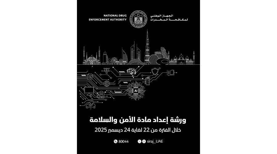 ينظم الجهاز الوطني لمكافحة المخدرات ورشة وطنية متخصصة لإعداد المحتوى العلمي لمادة الأمن والسلامة التي أعلن عنها الشيخ زايد بن حمد آل نهيان، رئيس الجهاز الوطني لمكافحة المخدرات ضمن فعاليات الاجتماعات السنوية لحكومة دولة الإمارات 2025، حيث تقام الورشة بمشاركة نخبة من الخبراء والمتخصصين، وذلك خلال الفترة من 22 إلى 24 ديسمبر 2025. وتكون الورشة ضمن المرحلة الأولى لإطلاق هذا المشروع الوطني الريادي ضمن خطوات متلاحقة لتعزيز الوعي والثقافة المجتمعية في مجالات الحماية والوقاية. وتأتي الورشة في إطار جهود الجهاز الوطني لمكافحة المخدرات لتعزيز الوعي المجتمعي وحماية الأجيال من مخاطر التعاطي والإدمان، حيث ستناقش آليات إعداد مادة الأمن والسلامة، وتنمية المهارات الحياتية، والتوعية بمخاطر المخدرات.