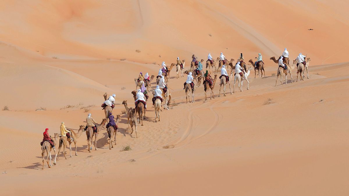 تستعد القرية التراثية بالقرية العالمية في دبي لاستقبال أطول نسخة في تاريخ رحلة الهجن، بعد غد، مع اقتراب قافلة النسخة الـ12 من الوصول إلى محطتها الختامية، بعد أن قطعت أكثر من نصف المسافة عبر الكثبان الرملية لصحراء دولة الإمارات، بمشاركة 29 شخصاً من 18 جنسية مختلفة من المواطنين والمقيمين، ضمن رحلة تمتد على مدار 21 يوماً لمسافة 1050 كيلومتراً على ظهور الهجن.