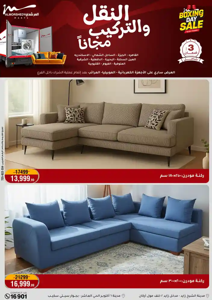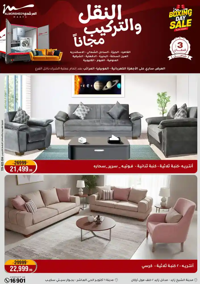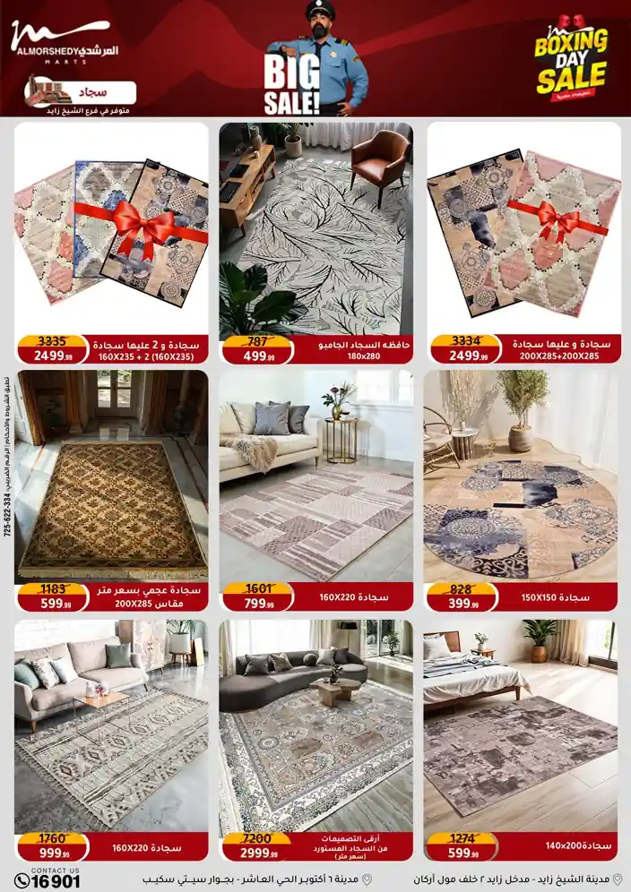 عروض جديدة من أسواق المرشدي مع اكبر مهرجان للتخفيضات في مصر خصومات حتى 70% وقسط براحتك بدون فوائد بأسعار العروض المخفضة على 12 شهر لحاملي بطاقة ائتمان CIB أو قسط براحتك مع VALU بدون مقدم حتى 60 شهر أو بدون مقدم وبدون فوائد مع نظام هاتريك وكمان النقل مجاني للقاهرة والجيزة والقليوبية على قسم الأجهزة الكهربائية والموبيليا والمراتب ( تطبق شروط المكان ) خصومات على جميع الأقسام أدوات منزلية – اجهزة كهربائية – مفروشات – موبيليا – نجف – سجاد – مراتب – ملابس رجالي وحريمي وأطفالي ومستلزمات ولعب الأطفال وجاليري وأقسام تانية كتير استمتع بالتسوق في أسواق المرشدي مع أكتر من 12 قسم و أكثر من 10,000 منتج يعني كل اللي بتحلم بيه عند المرشدي هتلاقيه