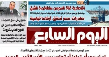 تنشر "اليوم السابع" فى عددها المطبوع الصادر غدا الجمعة، مصر ترسم خطوطا حمراء فى السودان تزامنا مع زيارة البرهان للقاهرة: لن نسمح بأى تجاوز أو تهاون يمس الأمن القومى المصرى.