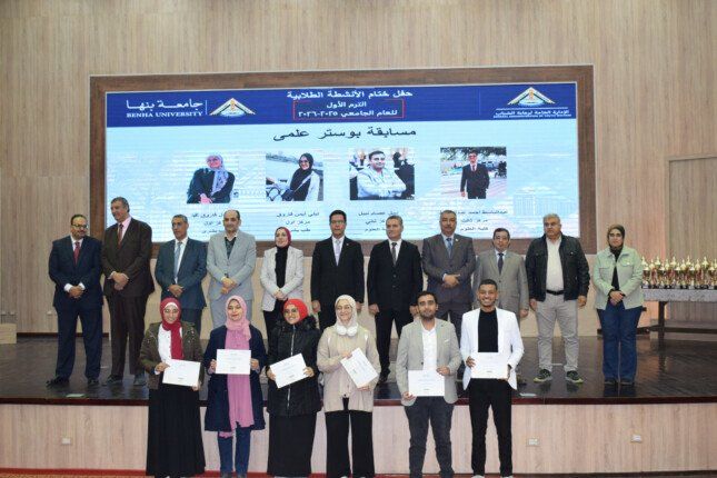 شهد حفل ختام الأنشطة الطلابية بجامعة بنها حضورًا مميزًا بتواجد الدكتور ناصر الجيزاوي رئيس الجامعة، إلى جانب الدكتور طه عاشور نائب رئيس الجامعة لشئون خدمة المجتمع، والدكتورة جيهان عبد الهادي نائب رئيس الجامعة للدراسات العليا والبحوث، وعدد من القيادات الأكاديمية والإدارية. وقد أكد الجيزاوي على أهمية تكريم الطلاب المتميزين وأهمية الأنشطة في تطوير شخصية الطلاب.