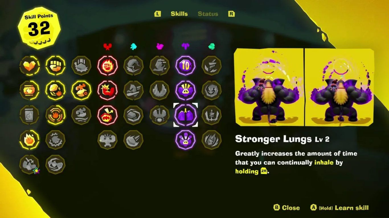 تعد مهارة Stronger Lungs في المستوى الأول ضرورية أيضا لأنها تعزز قوة الاستنشاق وتسمح بالتعامل مع تضاريس أكثر صلابة وهو ما يزيد من فاعلية Elephant Bananza في الطبقات المتقدمة.