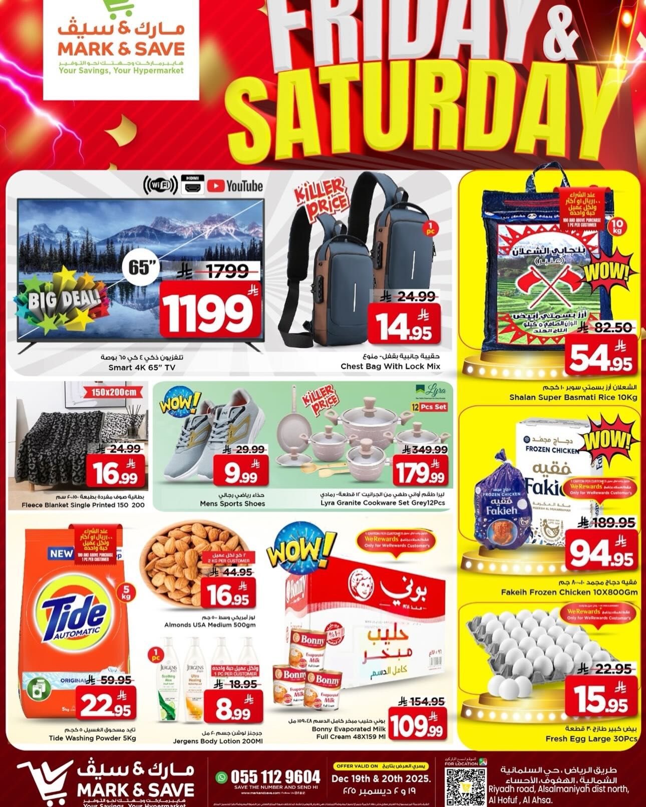 نقدم لكم اليوم عروض مارك اند سيف الاحساء السبت 20 ديسمبر 2025 تشمل الأجهزة المنزلية والالكترونيات والمنتجات المنزلية بجانب حقائب الظهر والكتف العملية إضافة إلى الأرز البسمتي مع الأحذية الرياضية والأواني المنزلية و بارخص الاسعار المناسبة للجميع اليوم فقط لا تفوت الفرصة ووفر الان .