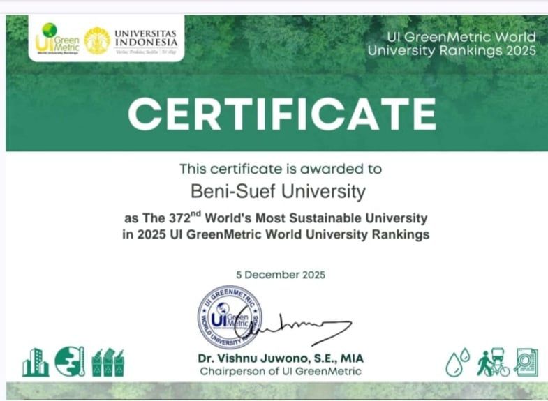 السبت، 20 ديسمبر 2025 10:04 صأعلن الدكتور طارق على ، القائم بأعمال رئيس جامعة بني سويف ، تحقيق الجامعة إنجازًا جديدًا في مسيرتها نحو الاستدامة البيئية، حيث تقدمت 62 مركزًا في تصنيف "Green Metric" العالمي لعام 2025، لتحتل المرتبة السابعة محليًا والمرتبة 372 عالميًا، مقارنة بالعام الماضي الذي جاءت فيه في المركز التاسع محليًا والـ434 عالميًا.