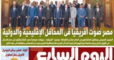 تنشر اليوم السابع فى عددها الصادر غدا، تفاصيل هامة حول العديد من الأحداث الجارية على الساحتين الداخلية والخارجية: مصر صوت أفريقيا فى المحافل الإقليمية والدولية