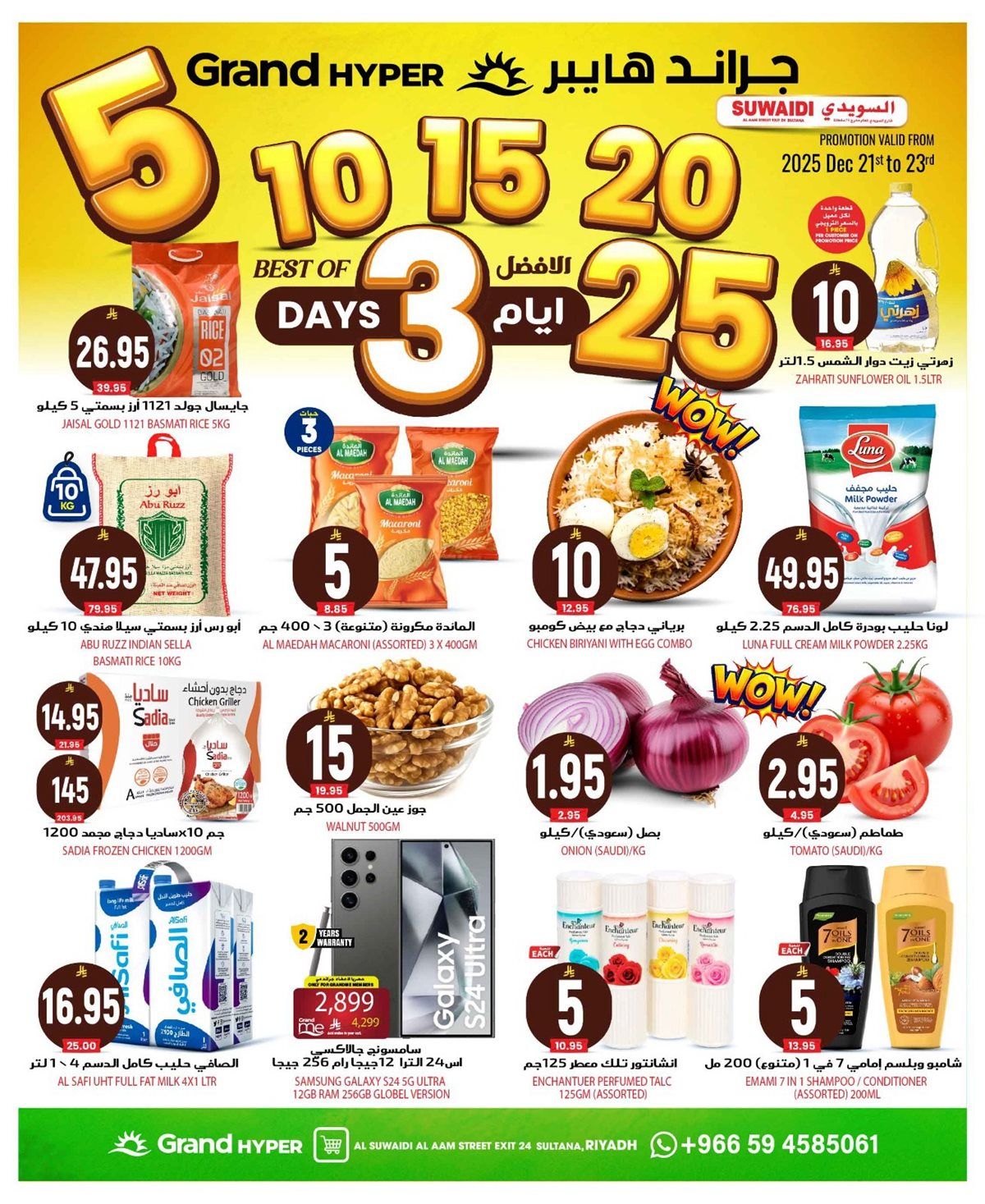 نستعرض معاكم عروض جراند هايبر الرياض الاحد 21 ديسمبر 2025 وتحتوي علي اللحوم المجمدة والدواجن المجهزة بأنواعها المختلفة بالإضافة إلى منتجات البقالة مع مجموعة من المنتجات المنزلية مثل مساحيق الغسيل وأدوات المطبخ وأجهزة كهربائية صغيرة وغيرها من المنتجات و باسعار مميزة في عرض حصري لمدة 3 ايام فقط .