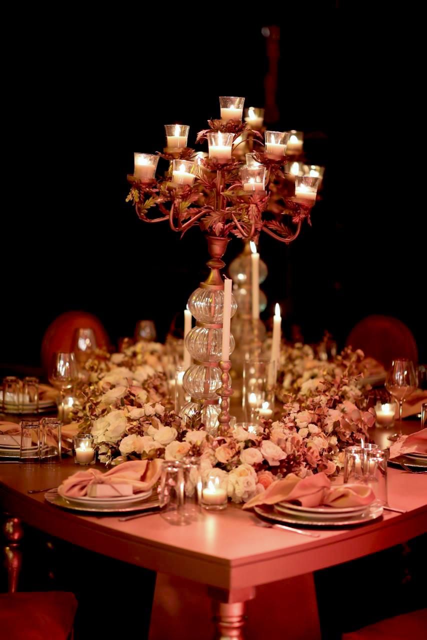 تُعد الشموع والفوانيس رمزاً للرومانسية الحالمة؛ إذ يمكن توزيع الشموع الطويلة على طول الممر أو تجميع الصغيرة منها على طاولات الاستقبال لخلق ضوءٍ متلألئ. كما يمنح تعليق الفوانيس على الأشجار لمسة ساحرة للاحتفالات الخارجية، مع ضرورة مراجعة سياسات المكان بشأن السلامة أو استخدام البدائل التي تعمل بالبطاريات لضمان سلامة جميع الحضور.