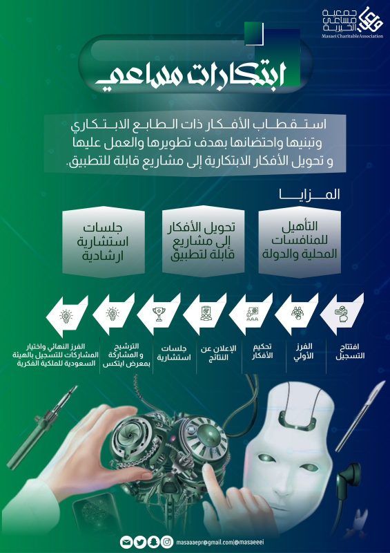 وتتميز “ابتكارات مساعي” بتقديم فرص نوعية تشمل التأهيل للمنافسات المحلية والدولية، والمشاركة في المعارض المتخصصة، إضافة إلى دعم تسجيل الملكية الفكرية للأفكار المتميزة، بما يعزز فرص وصولها إلى حيز التنفيذ وتحقيق أثر ملموس.
