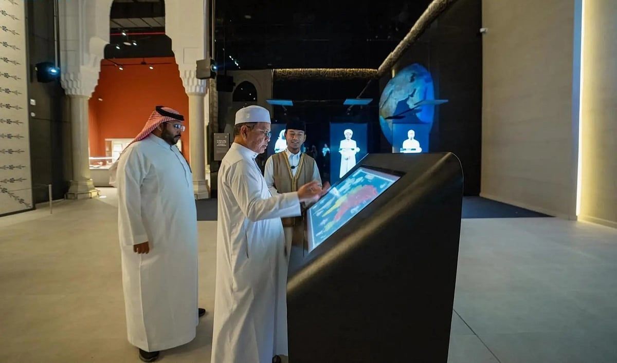 وتجول والوفد المرافق في أقسام "معرض الوحي" و"متحف القرآن الكريم"، وشاهدوا ما فيهما من تجربة متحفية فريدة تروي رحلة الوحي، وتُبرز عظمة كتاب الله.