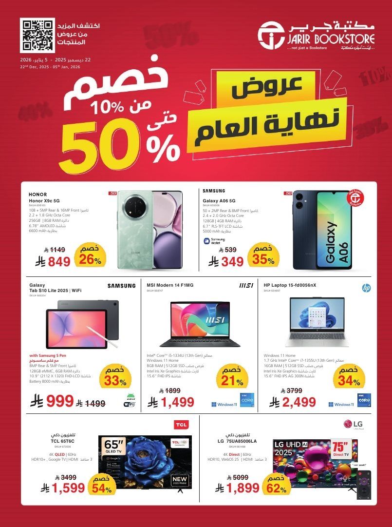 بنقدم ليكم اليوم احدث عروض جرير الاثنين 2 رجب 1447هـ و تحتوي علي تشكيلة من الالكترونيات منها اجهزة اللابتوب المتنوعة الخواص و المميزات من ماركات معروفة و ايضا السماعات الاسلكية و ايضا بتحتوي علي احدث الجوالات و غيرها من الاجهزة الالكترونية و باقل الاسعار بمناسبة تخفيضات نهاية العام فقط ابقوا معنا ليصلكم كل جديد