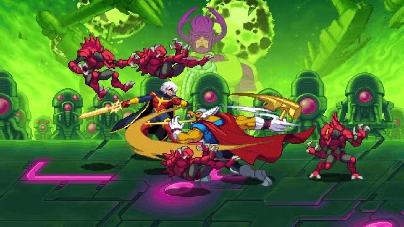 تعيد لعبة Marvel Cosmic Invasion اللاعبين إلى زمن أبسط من تاريخ الألعاب، حيث كانت الرسومات البكسلية هي المسيطرة بلا منازع، وكان نوع ألعاب القتال الجانبي من بين الأكبر والأكثر انتشارًا في صناعة الألعاب بأكملها. يتعاون اللاعبون معًا بشخصيات Marvel الأيقونية، حيث تمتلك كل شخصية قدرات مميزة خاصة بها تتكامل بشكل طبيعي مع قدرات الشخصيات الأخرى أثناء القتال، وينطلقون لمواجهة موجات متتالية من الأعداء تتنوع بين الجنود الضعفاء والأشرار الأقوياء القادمين من مختلف أرجاء عالم Marvel القصصي.