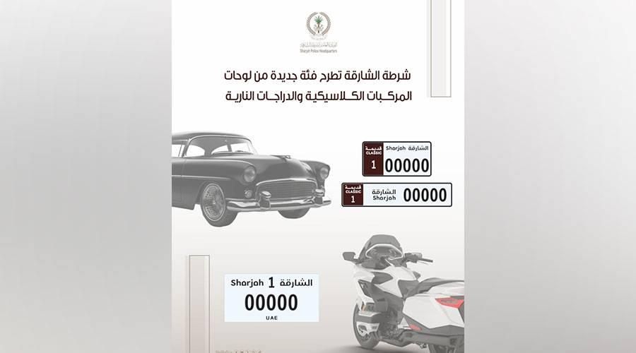 طرحت القيادة العامة لشرطة الشارقة فئة جديدة من لوحات المركبات الكلاسيكية والدراجات النارية، تشمل الفئة الأولى، وذلك في إطار تعزيز الهوية البصرية لإمارة الشارقة، وتماشياً مع التحديث المستمر في تصميم لوحات أرقام المركبات، وبما يجسد البعد الحضاري للإمارة.