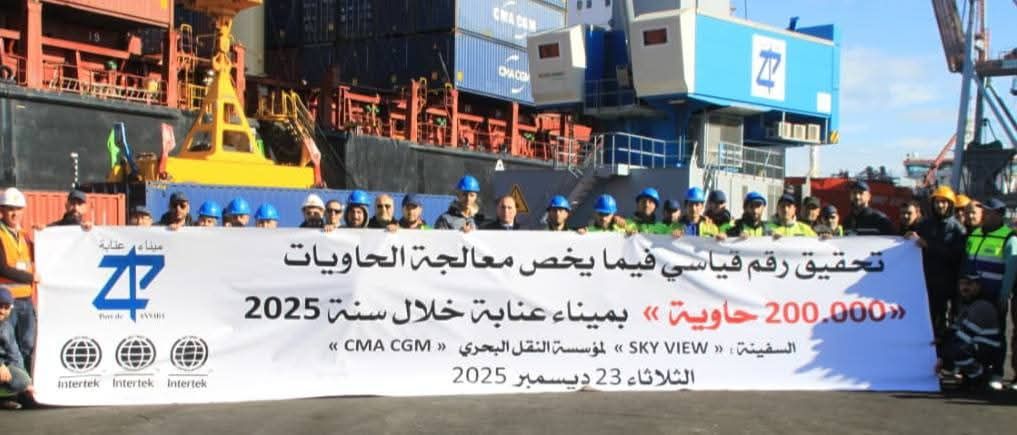 تمّ بتاريخ اليوم الثلاثاء، وعلى مستوى المرفأ رقم (22)، تنظيم احتفالية رسمية من طرف مؤسسة ميناء عنابة، وذلك بمناسبة تجاوز عتبة مائتي ألف (200.000) حاوية على مستوى ميناء عنابة، وهو إنجاز يُعدّ سابقة فريدة من نوعها في تاريخ الميناء.