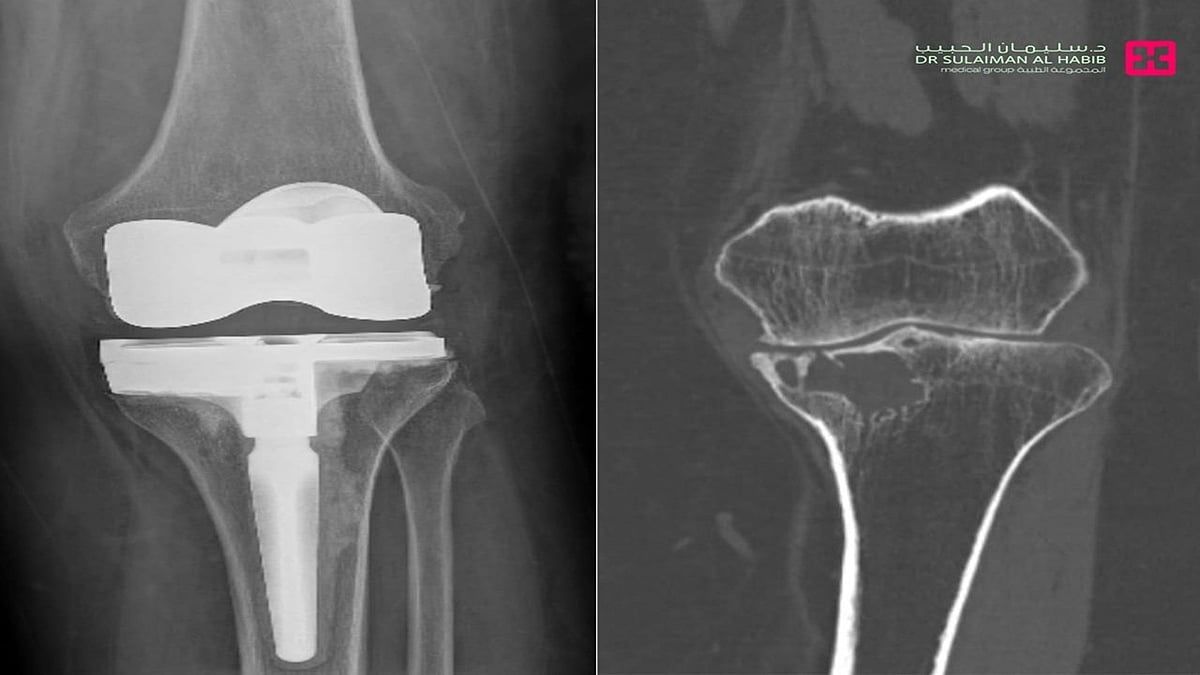 موضحاً بأنه تم إخضاع المراجعة لجراحة دقيقة استغرقت ساعتين تحت التخدير العام، وتم فيها كحت الورم واستئصاله بالكامل، واستبدال مفصل الركبة في عملية معقدة ، وترميم الفجوة بواسطة دعامات خاصة.