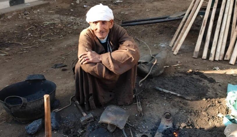 وأشار العم حسين، إلى أنه لا يعمل في مكان ثابت، وإنما يعتمد على الأسواق الشعبية سواء في دشنا أو الوقف أو قرى أخرى بشمال محافظة قنا، حيث يتنقل ومعه أدواته مثل القربة المستخدمة في نفخ النار، والفحم، وعدة الطرق على الحديد، ويطلب منه الزبائن في تلك الأسواق تصنيع المقابض والقطع الحديدية الخاصة بالأدوات الزراعية التي لا يمكن الاستغناء عنها.