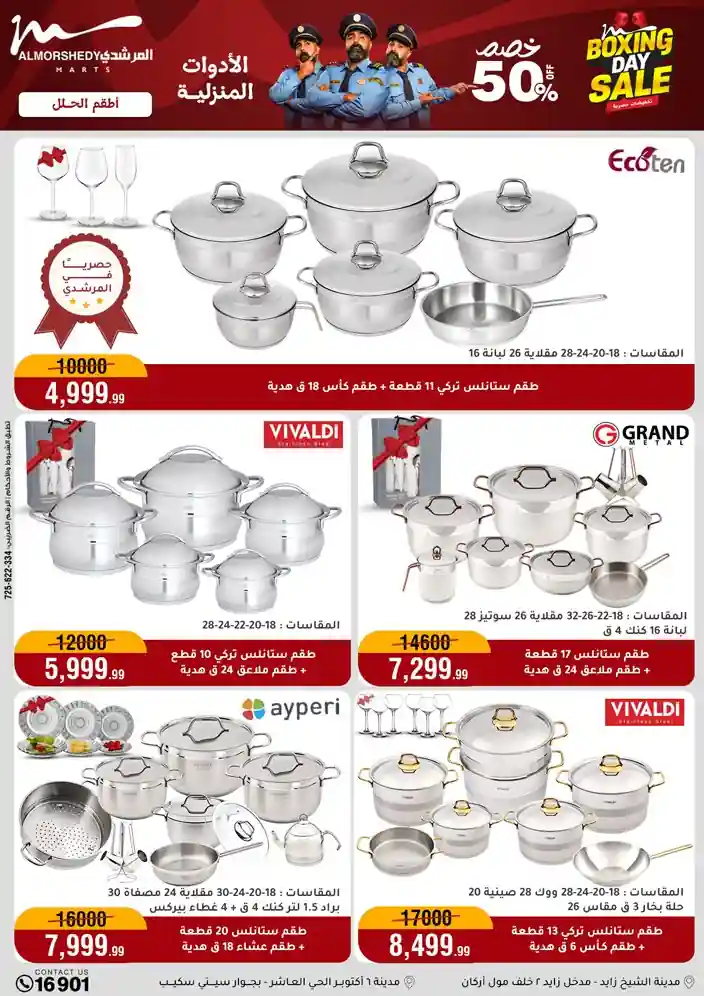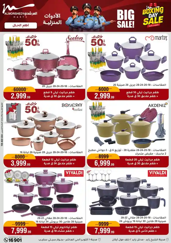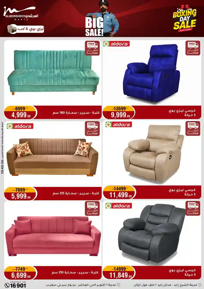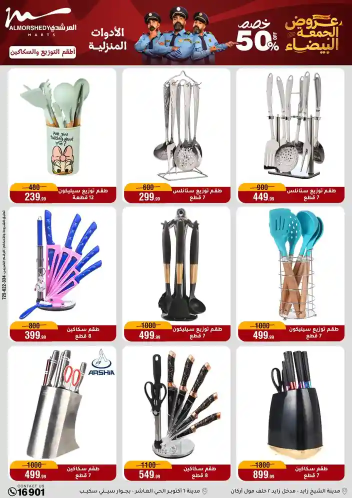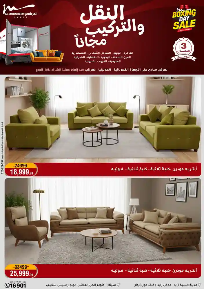 عروض جديدة من أسواق المرشدي مع اكبر مهرجان للتخفيضات في مصر خصومات حتى 70% وقسط براحتك بدون فوائد بأسعار العروض المخفضة على 12 شهر لحاملي بطاقة ائتمان CIB أو قسط براحتك مع VALU بدون مقدم حتى 60 شهر أو بدون مقدم وبدون فوائد مع نظام هاتريك وكمان النقل مجاني للقاهرة والجيزة والقليوبية على قسم الأجهزة الكهربائية والموبيليا والمراتب ( تطبق شروط المكان ) خصومات على جميع الأقسام أدوات منزلية – اجهزة كهربائية – مفروشات – موبيليا – نجف – سجاد – مراتب – ملابس رجالي وحريمي وأطفالي ومستلزمات ولعب الأطفال وجاليري وأقسام تانية كتير استمتع بالتسوق في أسواق المرشدي مع أكتر من 12 قسم و أكثر من 10,000 منتج يعني كل اللي بتحلم بيه عند المرشدي هتلاقيه