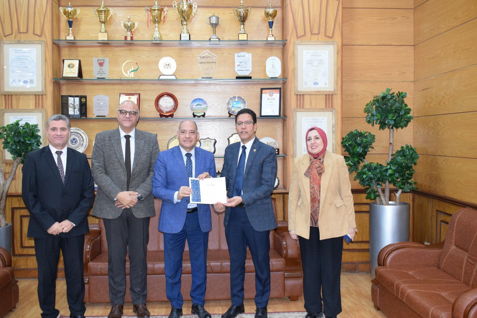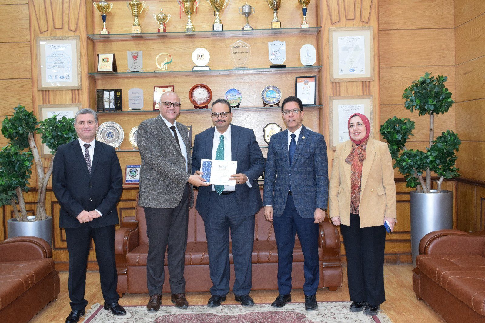 الخميس، 25 ديسمبر 2025 02:14 مكرم مجلس جامعة بنها برئاسة الدكتور ناصر الجيزاوى رئيس الجامعة، وبحضور المهندس أيمن عطية محافظ القليوبية، والدكتورة جيهان عبد الهادى نائب رئيس الجامعة لشئون الدراسات العليا والبحوث، والدكتور طه عاشور نائب رئيس الجامعة لشئون خدمة المجتمع وتنمية البيئة، الكليات الفائزة بمسابقة أفضل المواقع الإلكترونية.
