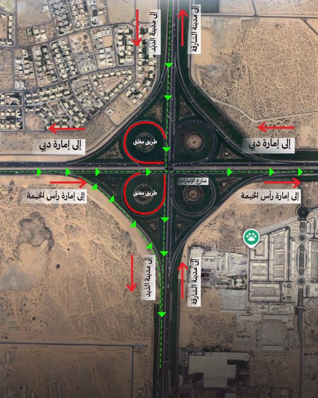 أعلنت وزارة الطاقة والبنية التحتية، عن إغلاق المسار للقادمين من إمارة الشارقة باتجاه إمارة رأس الخيمة عند الجسر رقم (7)، على شارع الإمارات، اعتباراً من يوم الأحد الموافق 28 ديسمبر، 2025، بسبب تنفيذ أعمال تطويرية على شارع الإمارات.