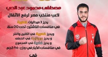 حصل مصطفى عبد الحي لاعب المنتخب الوطني لرفع الأثقال على 3 ذهبيات في منافسات وزن 94 كجم تحت 20 سنة بالبطولة العربية المقامة في قطر.