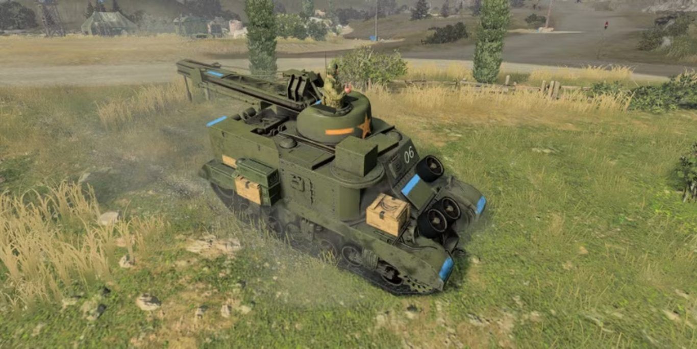 - تستدعي هذه القدرة النسخة الأكثر تطورًا من دبابة Sherman المستخدمة لدى CoH 3 US Forces في الحرب العالمية الثانية وتكون مرفقة بفرقة Rifleman راكبة على الجزء الخلفي.