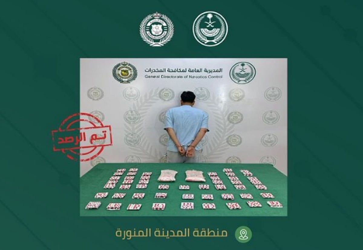 وأشارت المديرية العامة لمكافحة المخدرات إلى إيقافه واتخاذ الإجراءات النظامية بحقه، وإحالته إلى النيابة العامة.