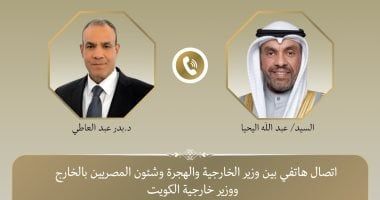 جرى اتصال هاتفي اليوم السبت بين د. بدر عبد العاطي وزير الخارجية والهجرة وشئون المصريين بالخارج، والشيخ عبد الله اليحيا وزير خارجية دولة الكويت الشقيقة، في إطار التشاور والتنسيق المستمر بين البلدين الشقيقين.